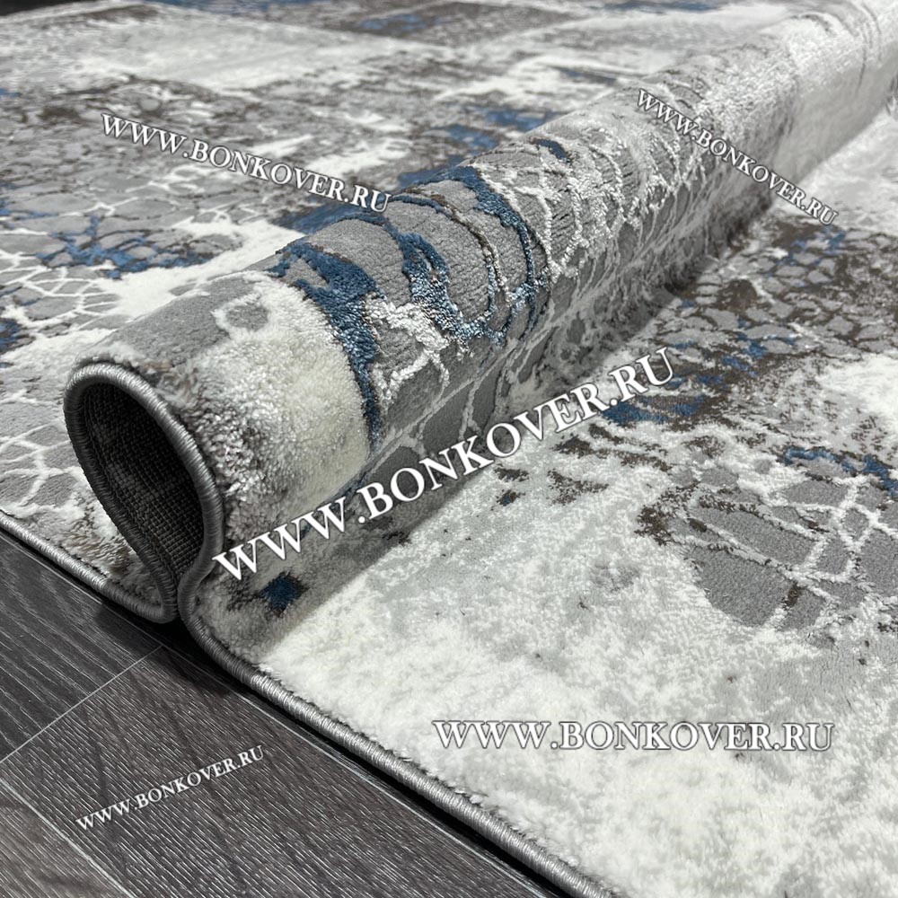 Импозантный Турецкий Ковер Для Гостиной Дизайн 25 Синий с Серым Прямоугольный наполняет интерьер жилого пространства теплом и уютом, гармонично сочетает в себе изящество и стиль. Он выполнен из современных материалов, комфортный и долговечный.